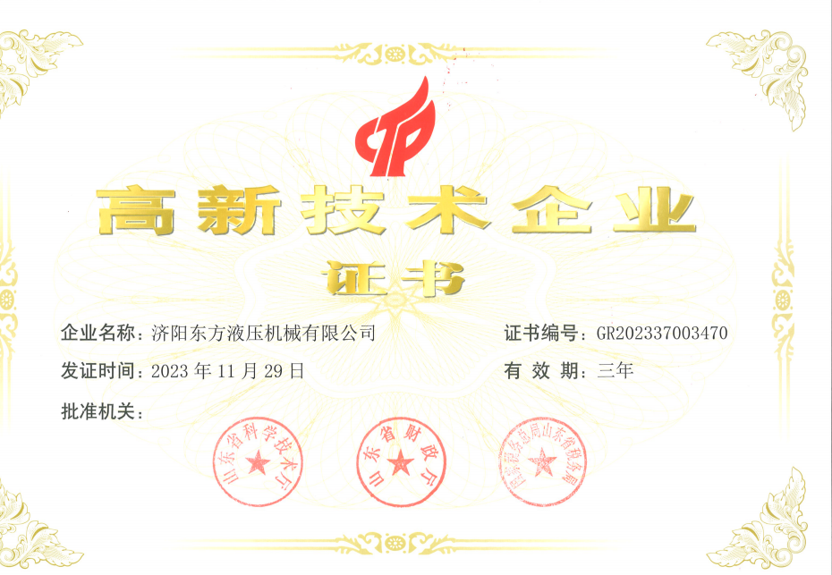 济阳东方液压机械有限公司注册时间2001年3月22日,公司至今有二十多年的生产制造经验,现已获得高新技术企业专精特新等证书;公司专业...